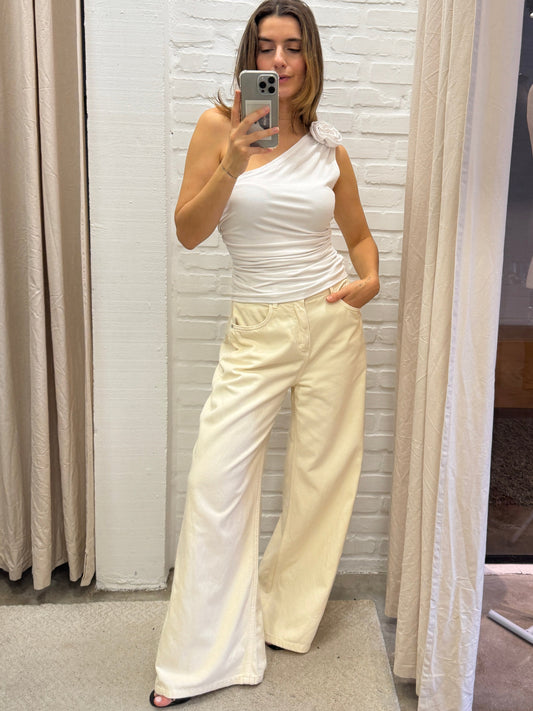 BLUSA OMBRO COM FLOR BRANCA - M